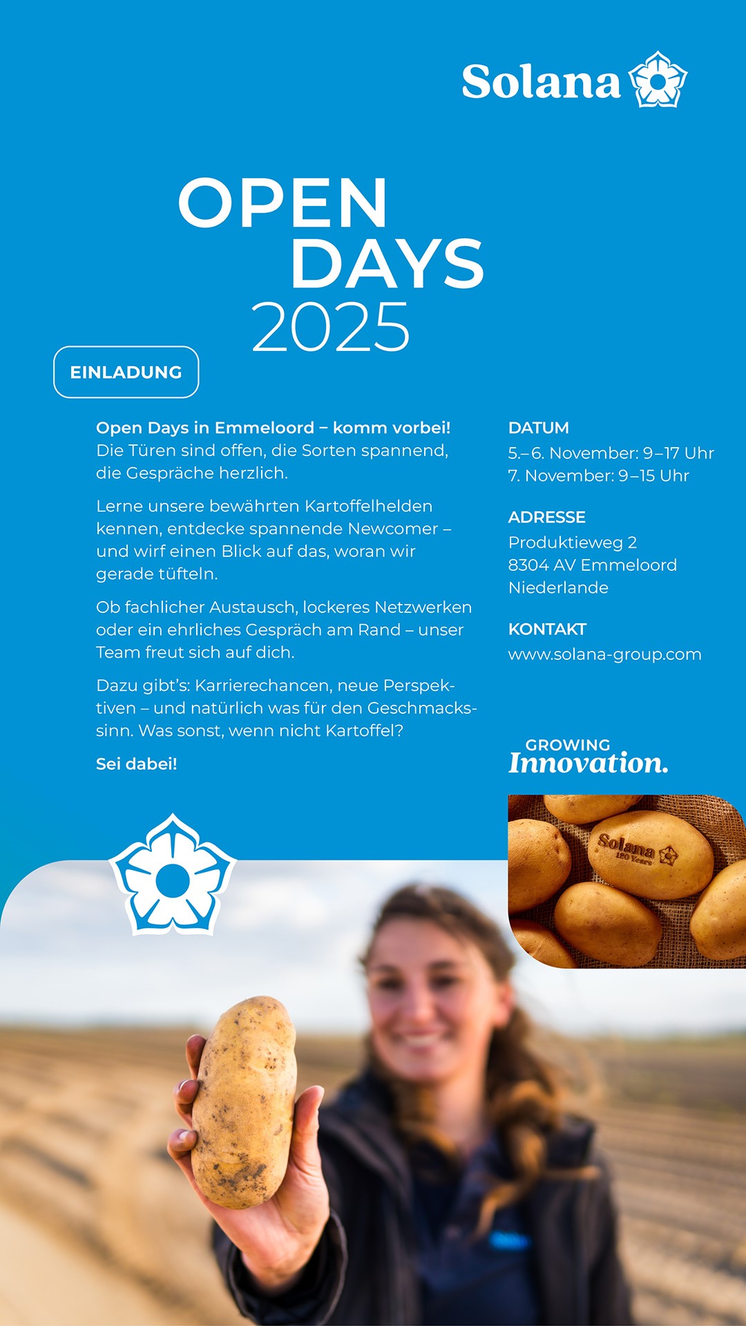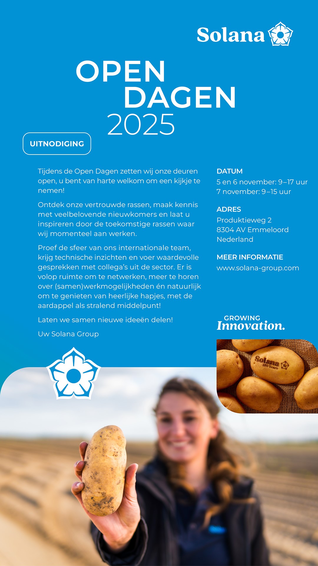 Solana olarak patates yetiştiriciliğinin geleceğini birlikte şekillendirmek için sizi Open Days 2025 etkinliğimize davet ediyoruz!